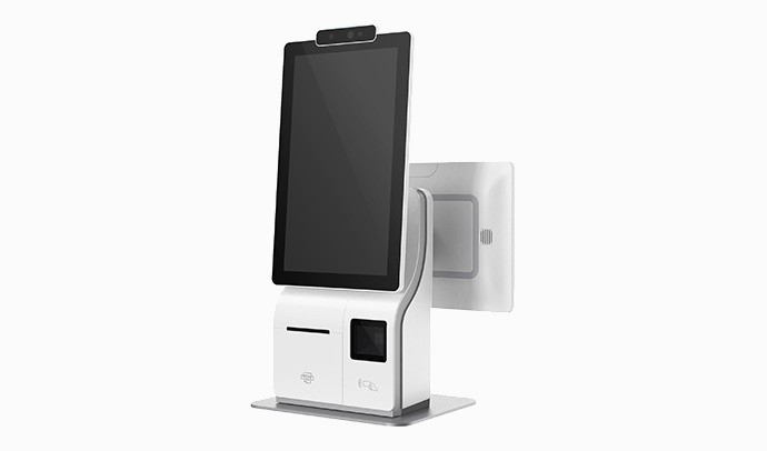 雙屏自助收銀設備,實現人工和自助兩種使用場景,將收銀POS和自助收銀設備合二為一,極大的節約人力成本和空間。
